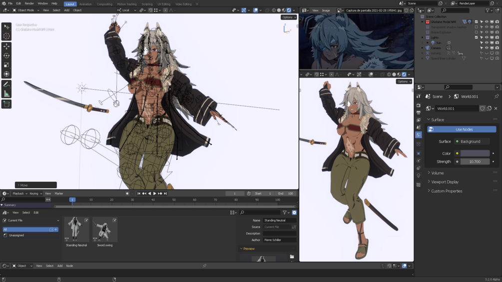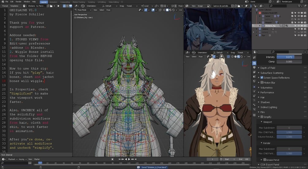 Anime Wolf girl warrior (Blender character rig)