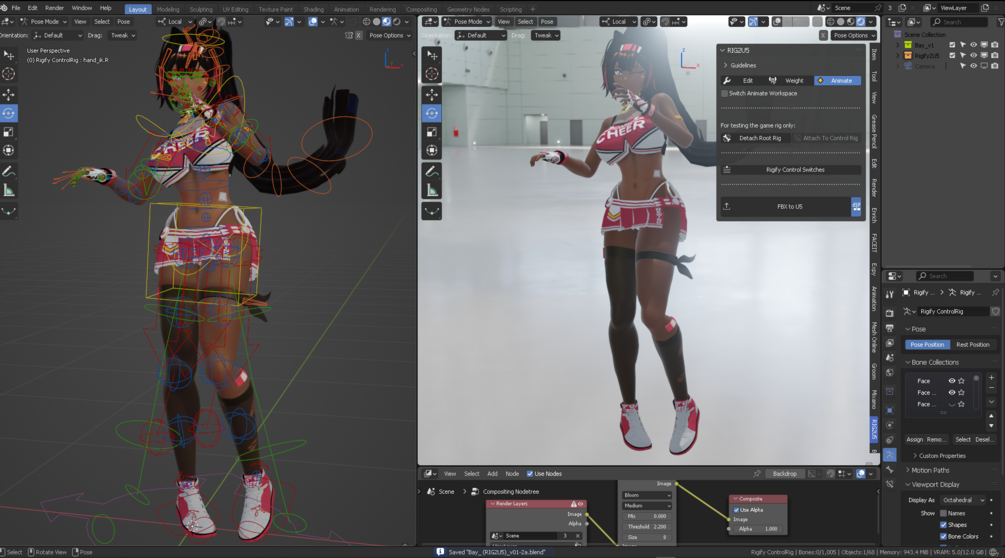 Cheerleader face+body rig in Blender 4.3
