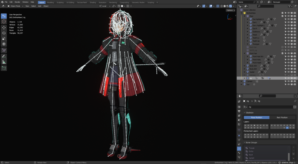 This model uses Rigify and Wiggle bones addon. Made in Blender 3.5